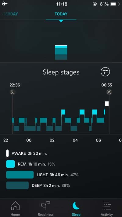 Another solid night's sleep with my Oura ring wearable: no wakings and three hours of deep sleep!