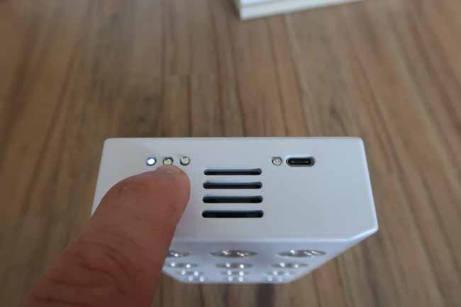 There are 3 small LEDs on the top of the Joovv Go, these indicate battery charge level.