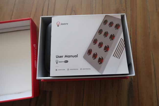 The Joovv Go arrives in a neat branded box. Upon opening you will find: